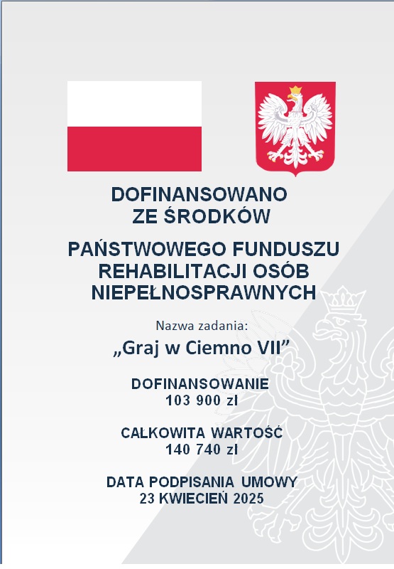 • Projekt dofinansowany ze środków Państwowego Funduszu Rehabilitacji Osób Niepełnosprawnych z Konkursu 1/2024 pn „Wspieramy aktywność"oraz ze środków Miasta Słupska z konkursu na dofinansowanie do wkładów własnych.